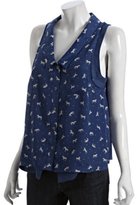 Spencer's blue horse-print sleeveless top is from BCBG.